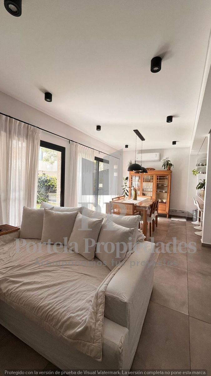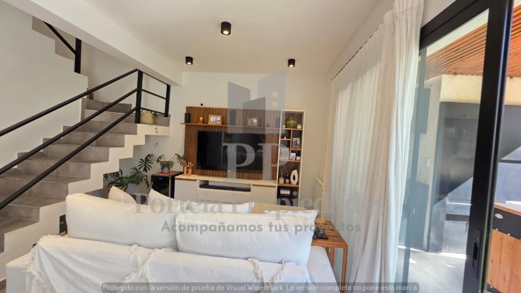 Código 8366-v000350 | CASA ESTILO MINIMALISTA DE 4 AMBIENTES EN BARRIO CERRADO LAS LILAS EN PARQUE LELOIR PARTIDO DE ITUZAINGÓ.. LA PROPIEDAD ESTA DENTRO DE UN CONDOMINIO CERRADO DE 24 UNIDADES FUNCIONALES CON DOBLE PORTÓN ELÉCTRICO PARA ENTRADA Y SALIDA DE VEHICULOS, CERCO ELECTRICO Y CAMARAS DE SEGURIDAD. LA CASA SE DESARROLLA EN DOS PLANTAS SOBRE UNA SUPERFICIE DE 200M2, SUPERFICIE CUBIERTA 107 M2 Y SEMICUBIERTA 22M2. PB: LIVING COMEDOR AMPLIO CON COCINA INTEGRADA, TOTALMENTE EQUIPADA, CON BARRA Y MESADA DE SILESTONE BLANCO, CAMPANA Y ARTEFACTOS A GAS. TOILETTE DE RECEPCIÓN Y LUGAR DE GUARDADO EN UN PLACAR EMPOTRADO. PA: TRES HABITACIONES, LA PRINCIPAL EN SUITE Y LAS OTRAS DOS COMPARTEN OTRO BAÑO COMPLETO. TODAS LAS HABITACIONES TIENEN PLACAR. EN EL EXTERIOR LA PROPIEDAD TIENE JARDIN CON GALERIA CUBIERTA, PARRILLA Y ESPACIO CON FOGONERO. TODAS LAS ABERTURAS SON DE DVH COLOR NEGRAS Y PISOS DE PORCELANATO. CALEFACCIÓN POR RADIADORES Y AIRE ACONDICIONADO EN TODOS LOS AMBIENTES. LA PROPIEDAD ES APTA CREDITO Y ESTA EN PERFECTO ESTADO DE MANTENIMIENTO.